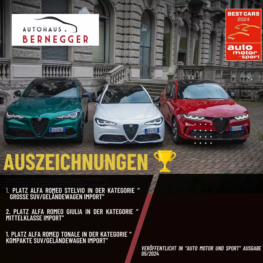 Seit 1965 steht das Autohaus Bernegger in Rosenheim für Qualität und Leidenschaft. Mit rund 60 Jahren Erfahrung bieten wir beste Angebote und Service für Jeep, Alfa Romeo, Fiat, Abarth und weitere Marken. Als Familienbetrieb legen wir großen Wert auf persönliche Beratung und individuelle Betreuung. Besuchen Sie unser Autohaus in Rosenheim und erleben Sie erstklassigen Service und eine familiäre Atmosphäre, die seit Generationen geschätzt wird.